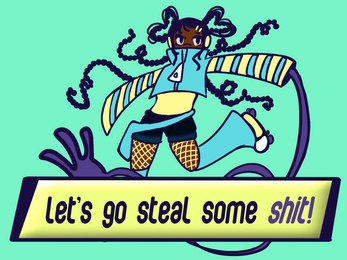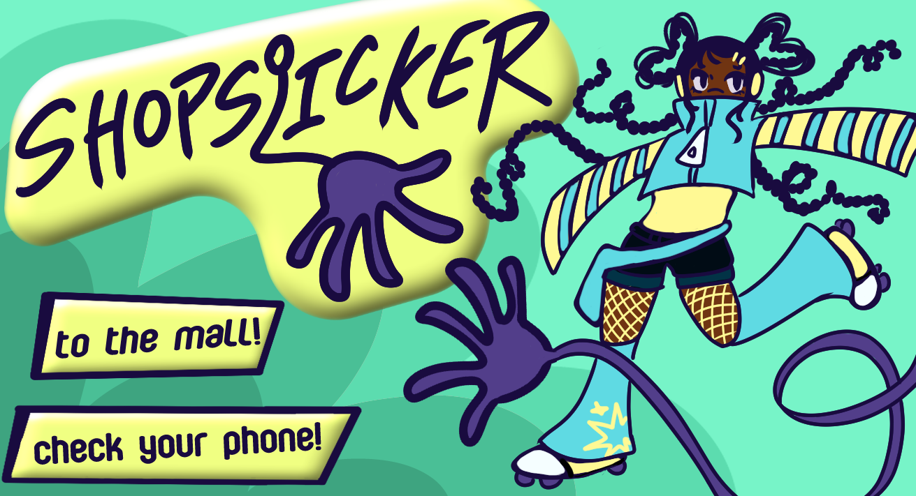 You owe some dude money. You must steal shit off people in a mall with your sticky hand to get money! Navigate the mall with roller skates and a grapple hook sticky hand to evade the mall security, steal items and sell them for cash. High value items are worth more! If you crash, you drop all your stuff, sonic style! Get out with as many items and money as possible to win!